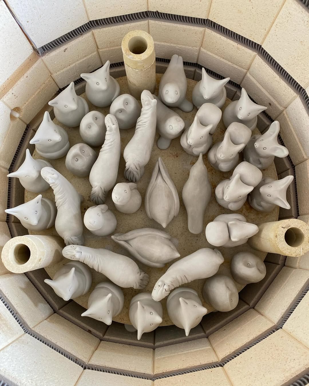 The critters are created using the pinch pot technique to make sure they're hollow.