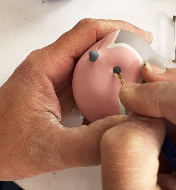 I’ll score around their eyes and then it’s back into the kiln for the glaze firing. This time the temperature reaches about 1245°C