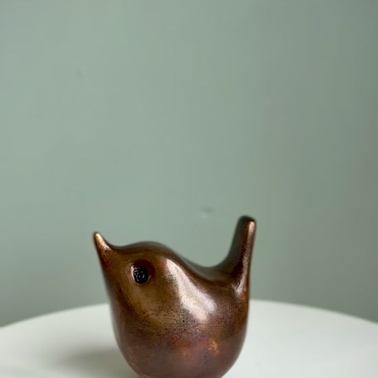 Small Foundry Cast Bronze Wren Sculpture - Nutmeg Patina